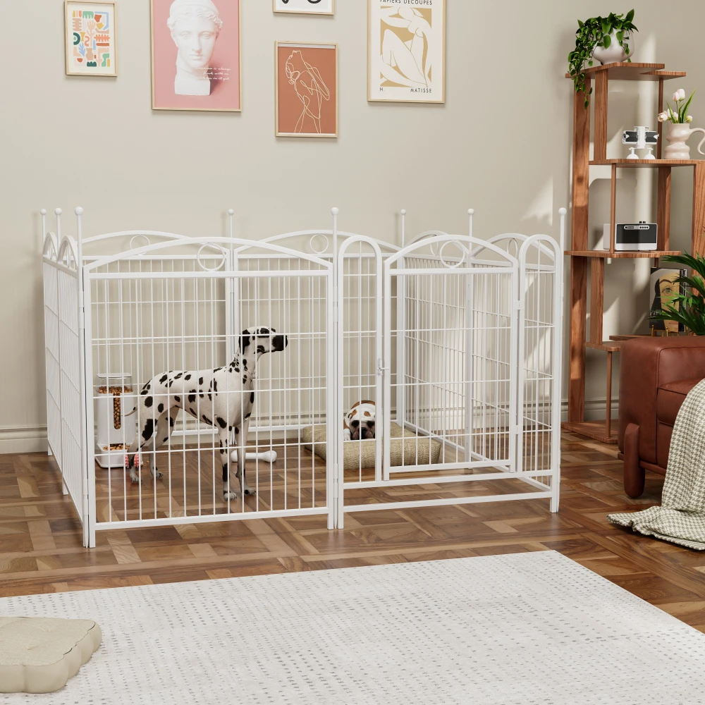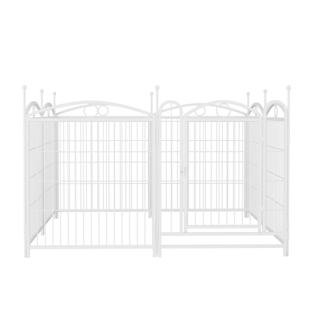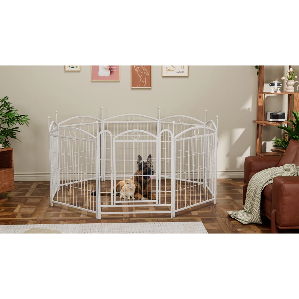 A Win-Win Solution: The Dog Playpen is designed to bring a win-win solution to you and your lovely dog. Different from a narrow enclosure cage or kennel, the dog pen provides a spacious semi-open activity area specifically for your dog. Your dog will have fun in its safe and sturdy kingdom. Meanwhile, you can take a real break and be truly relaxed without worrying about your beloved pet. - Anti-Rust & Stable: The dog fences for the yard take in new technology that crafted with silver powder-coated on heavy-duty thickened iron, come to be highly rust & corrosion resistant, waterproof and anti UV. Enable to increase longevity and durability whatever indoor or outdoor. Coupled with heavy-duty thickened metal pipes add to the stability of the dog pen.